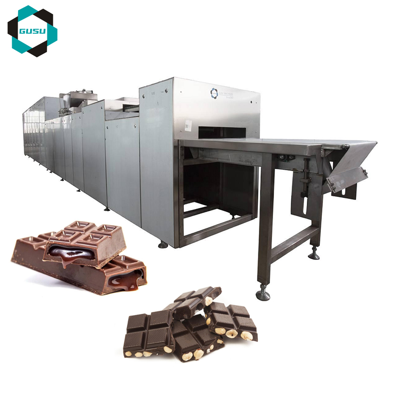 QJJ510全自动巧克力成型机具有QJJ150半自动巧克力棒浇注机的所有优点。此外,它还配备了多层巧克力冷却通道,所有功能部件都集成在一个系统中。集烘模、浇注、果仁添加(选配)、震动、冷却、脱模等功能于一体,并且它的产能更高,占地合理。与巧克力理料、巧克力包装机连接,可实现巧克力生产的全自动化。