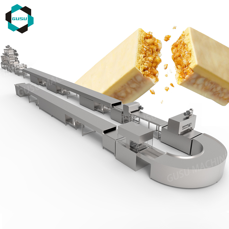姑苏机械复合糖排自动成型线是为了适应市场对糖排类产品日益增长的需求而专门研发设计的,比如能量棒,谷物棒,蛋白棒,水果棒,牛轧糖,士力架,沙琪玛等。有5种宽度可供选择:200,300,400,600以及800mm。
