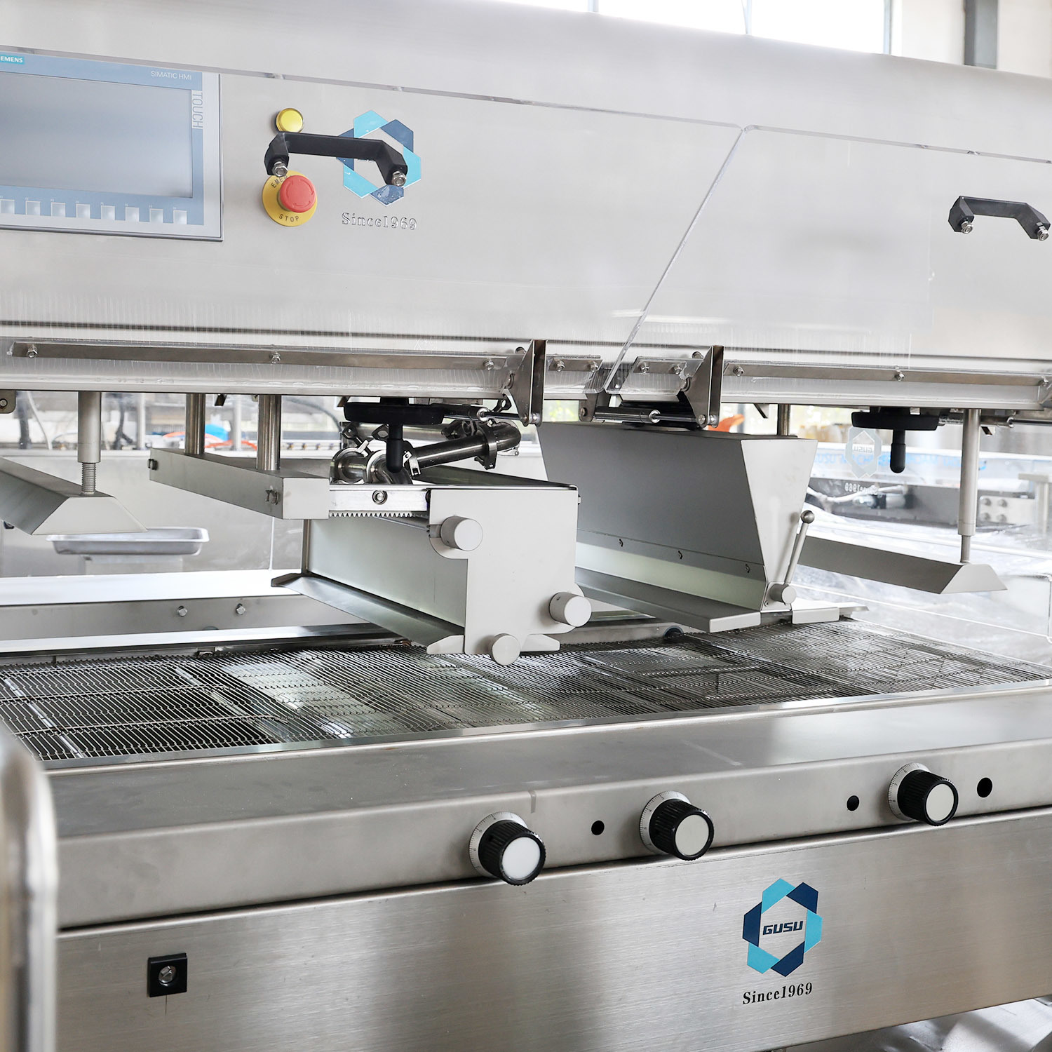 TYJ800、TYJ900、TYJ1000 、TYJ1200、TYJ1500、TYJ1800等大型工业巧克力涂衣机可配备不同长度的冷道,以满足工业规模的巧克力涂衣生产。姑苏机械涂层机网带结构可自由拉出清洗。底部料缸也可以自由拉出清洗,操作简单,易清洗,易维护。