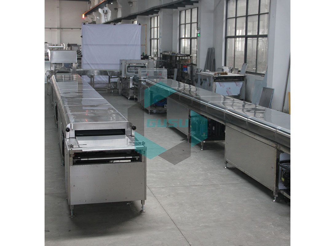巧克力冷道专为冷却各类巧克力产品而设计,全部采用 SUS304 不锈钢制造,可根据不同客户的要求生产不同宽度和长度的输送机。运输传送带可以是聚氨酯传送带、组合塑料传送带或不锈钢链条。冷却过程可控制,从而保证终产品的质量。